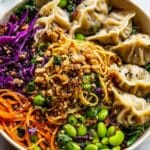Keywords: potstickers, noodle bowl, stir-fry, Asian fusion, easy dinner, quick meal, vegetables, comfort food