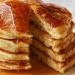 Store leftover pancakes in an airtight container in the refrigerator for up to 3 days. To keep pancakes longer, freeze them as described in the tips. Reheat in the microwave for quick warming, or use the oven or toaster for a crispier texture.