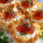 - Fill with Cream Cheese: Spoon about 1 teaspoon of softened cream cheese into each phyllo shell, filling them carefully without overstuffing.