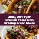 Keywords: chicken tacos, air fryer chicken, green sauce, Mexican tacos, easy dinner, avocado sauce