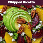 This vibrant Roasted Beet, Sweet Potato & Avocado Salad combines earthy roasted vegetables with creamy whipped ricotta and a zesty lemon-tahini drizzle. It’s a fresh, colorful dish perfect for a light lunch or a satisfying side.