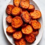 - Step 7: Arrange the roasted sweet potato rounds on a serving platter.