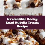 These Rocky Road Nutella Treats are a delightful twist on classic crispy treats, combining the creamy richness of Nutella with the gooey sweetness of marshmallows and the crunch of toasted pecans and Cocoa Krispies cereal. Topped with fluffy marshmallow spread, mini marshmallows, chocolate chips, and nuts, they make a perfect indulgent snack or dessert that’s easy to prepare and sure to satisfy any sweet tooth.