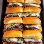 - Garnish and Serve: Sprinkle chopped fresh parsley over the sandwiches and serve immediately with warm au jus for dipping.