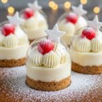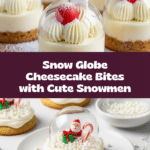 Snow Globe Cheesecake Bites are a charming and festive treat perfect for winter celebrations. These mini cheesecakes feature a crisp cookie crust, creamy filling, and a delicate gelatin dome enclosing adorable fondant snowmen for a magical snow globe effect.