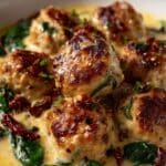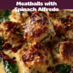 - Coat Meatballs: Remove the baked meatballs from the oven, pour the spinach Alfredo sauce over them, and gently toss or spoon to coat each meatball evenly with the creamy sauce.