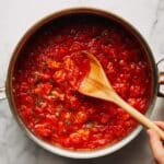 • Using San Marzano tomatoes gives the sauce a rich, authentic flavor but you can substitute with any good-quality whole canned tomatoes.