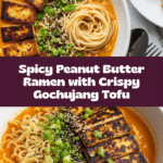 Keywords: spicy peanut butter ramen, gochujang tofu, vegan ramen, peanut butter noodle soup, tofu ramen recipe, Korean-inspired ramen, easy vegan dinner