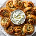 These Spinach and Feta Pinwheels are a delightful gluten-free snack or appetizer, combining flaky puff pastry with a savory spinach and cheese filling. Paired with a tangy yogurt dip, they’re perfect for gatherings or a tasty treat any time.