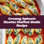 Delicious and creamy Spinach and Ricotta Stuffed Shells baked in a flavorful marinara sauce. This comforting Italian-inspired dish features jumbo pasta shells filled with a mixture of sautéed spinach, ricotta, mozzarella, Parmesan cheese, and fresh herbs, baked to golden perfection for a hearty vegetarian meal.