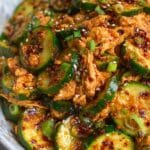 This Thai Cucumber Salad with Chicken is a refreshing and flavorful dish perfect for warm days or light lunches. Crisp cucumbers, tender shredded chicken, and a creamy peanut dressing come together with a kick of chili crisp for a vibrant salad packed with texture and taste.