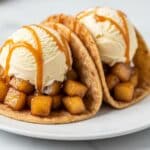 Keywords: apple pie tacos, dessert tacos, apple dessert, cinnamon sugar tortillas, caramel apple dessert, easy apple pie recipe