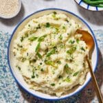 - Garnish and Serve: Transfer the mashed potatoes to a serving dish. Garnish with the reserved green onions and sprinkle toasted sesame seeds on top for added flavor and visual appeal. Serve warm.