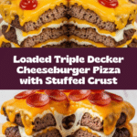 The Triple Decker Cheeseburger Pizza with Stuffed Crust combines the best of two favorites: juicy cheeseburgers and cheesy pizza. This layered dish offers a fun twist with a rich, stuffed crust and a flavorful beef topping that’s sure to please the whole family.