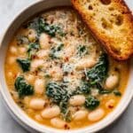 Keywords: Tuscan soup, Parmesan soup, creamy soup, cannellini beans, spinach soup, Italian soup, vegetarian soup, easy soup recipe