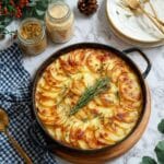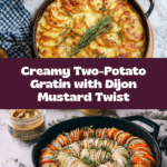 Keywords: potato gratin, two-potato gratin, Maille mustard recipe, cheesy potato bake, sweet potato gratin, russet potato casserole, French side dish, baked potato gratin