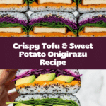 Onigirazu is a modern take on traditional Japanese rice balls, combining compacted sushi rice, fresh veggies, and crispy tofu or sweet potato katsu wrapped in nori seaweed. This recipe features two delicious variations—crispy baked or fried tofu katsu and sweet potato katsu—with optional pickled red cabbage for a tangy crunch. Perfect for a portable, healthy, and satisfying meal or snack.