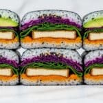 Keywords: onigirazu, japanese rice sandwich, tofu katsu, sweet potato katsu, vegan sushi, gluten free option, healthy snack, vegan lunch