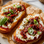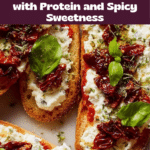 This high-protein cottage cheese pizza toast is a delicious and satisfying snack or light meal. Featuring a crispy sourdough base topped with creamy cottage cheese, tangy marinara, sun-dried tomatoes, and a touch of spicy hot honey, it’s both simple and packed with flavor.