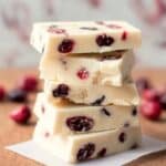 Keywords: white chocolate fudge, cranberry fudge, easy fudge recipe, holiday fudge, no-bake fudge, creamy fudge